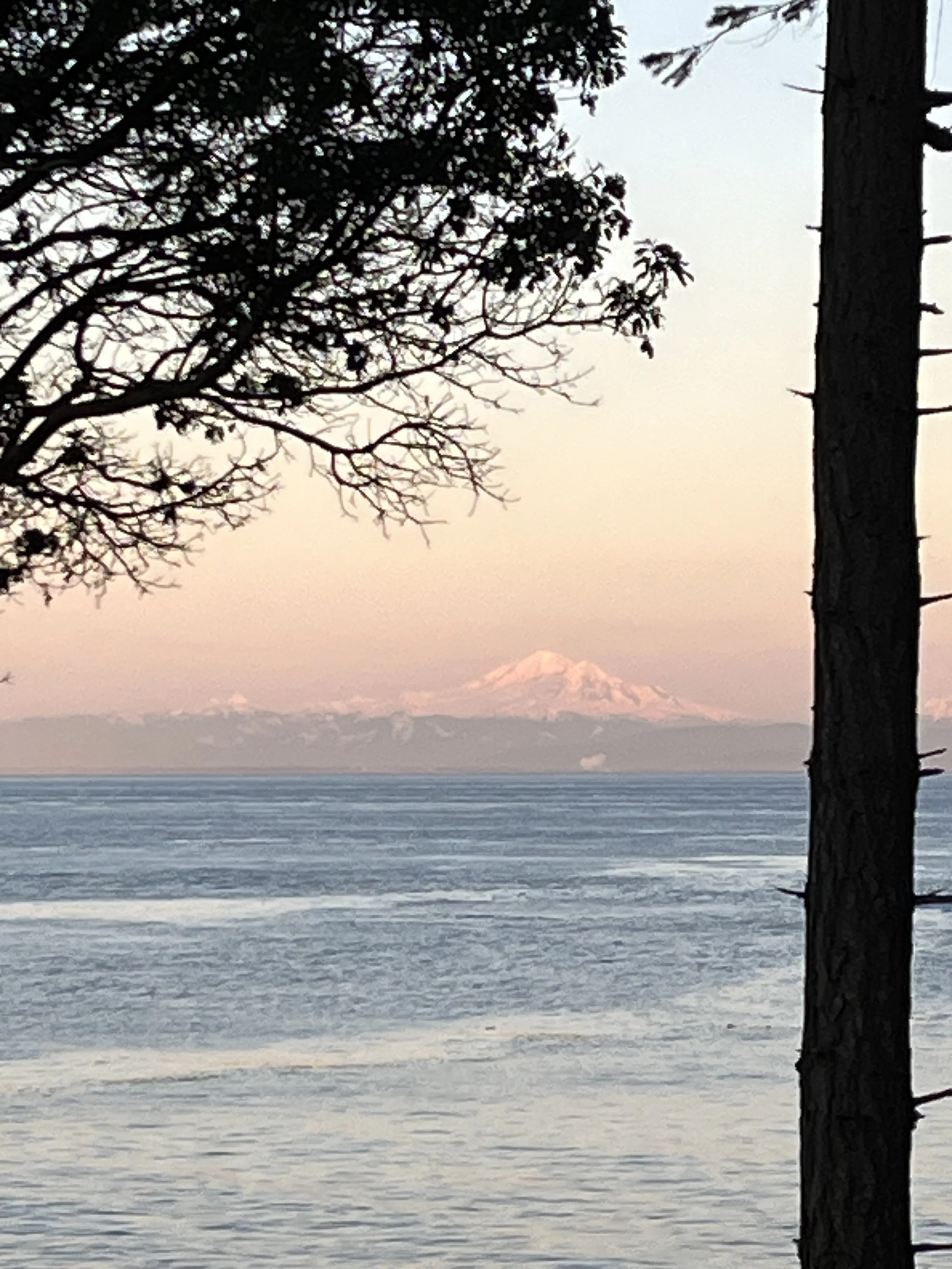 Expansive views stretch across the Salish Sea toward the Coastal Mountains and Mount Baker, creating a constant visual connection to the broader coastal landscape. In the foreground, the calm and protected waters of David’s Cove form an intimate edge to the property, well suited for swimming, kayaking, and quiet moorage. The low-bank shoreline allows a gentle transition from land to water, reinforcing a direct relationship with the ocean. Throughout the day, shifting light, passing boats, and the movement of tide and weather continually animate the view, grounding the site within the rhythms of the surrounding marine environment. It is also not uncommon to experience close encounters with coastal wildlife, with orcas occasionally passing offshore, seals frequenting the cove, and eagles often seen soaring above the shoreline.
