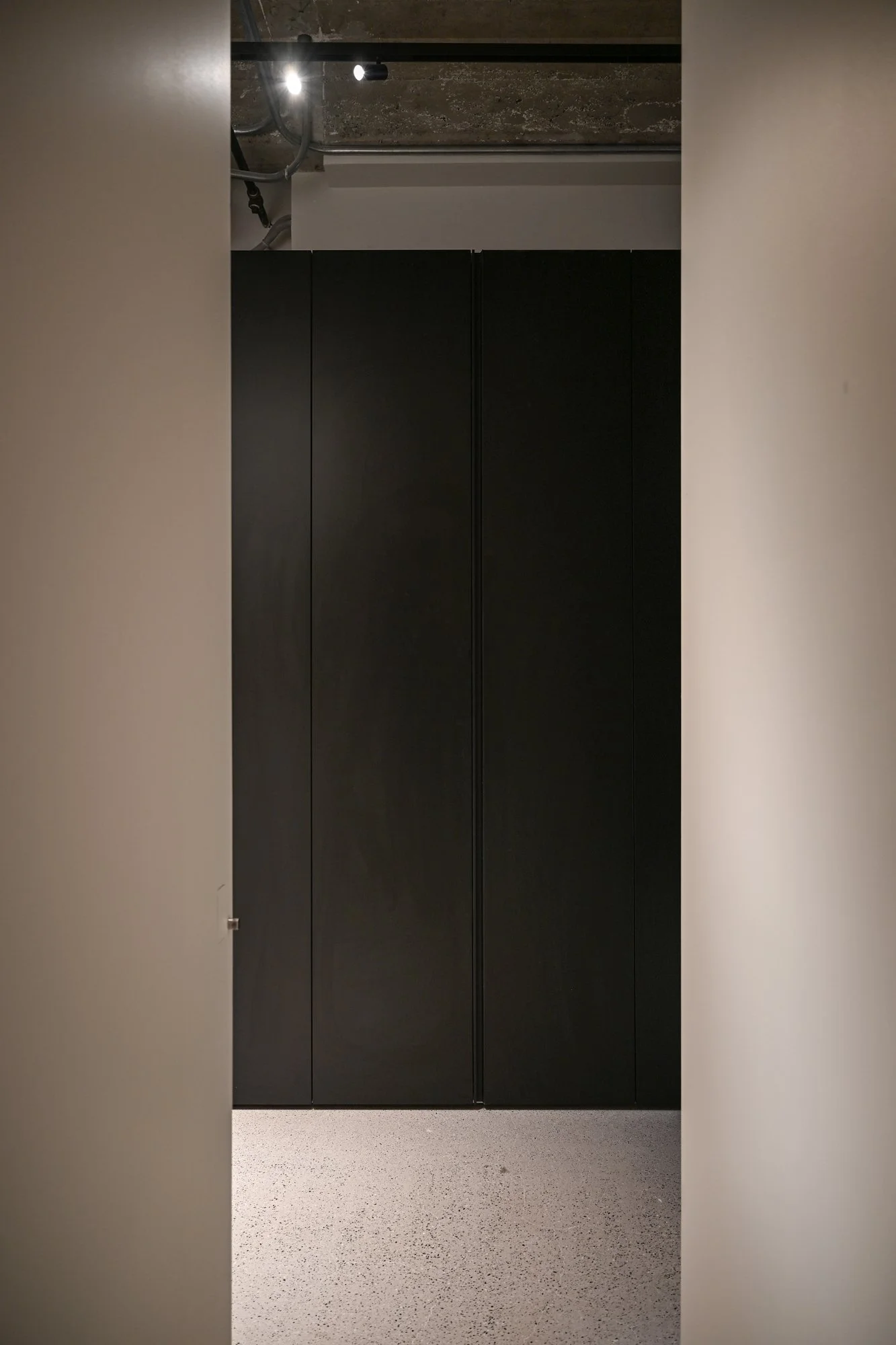 Architectural details speak to an elevated design sensibility: an 11-foot pivot door, shadow reveals at the baseboards, polished concrete underfoot, and custom lighting integrated throughout. The west-facing orientation ensures abundant afternoon and evening light, accentuating original heritage windows, exposed brickwork, and soaring 12-foot ceilings.